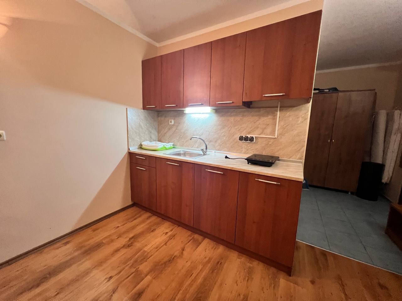 Страхотен едностаен апартамент в централната част на Слънчев Бряг. Апартаментът е разположен на трети етаж в сграда с асансьор, североизточно изложение. С Акт16 и битов ток! Има такса поддръжка в 410Евро годишно. Разстоянието до плажа е около 300м.В близост до целогодишен супермаркет и автобусна спирка.