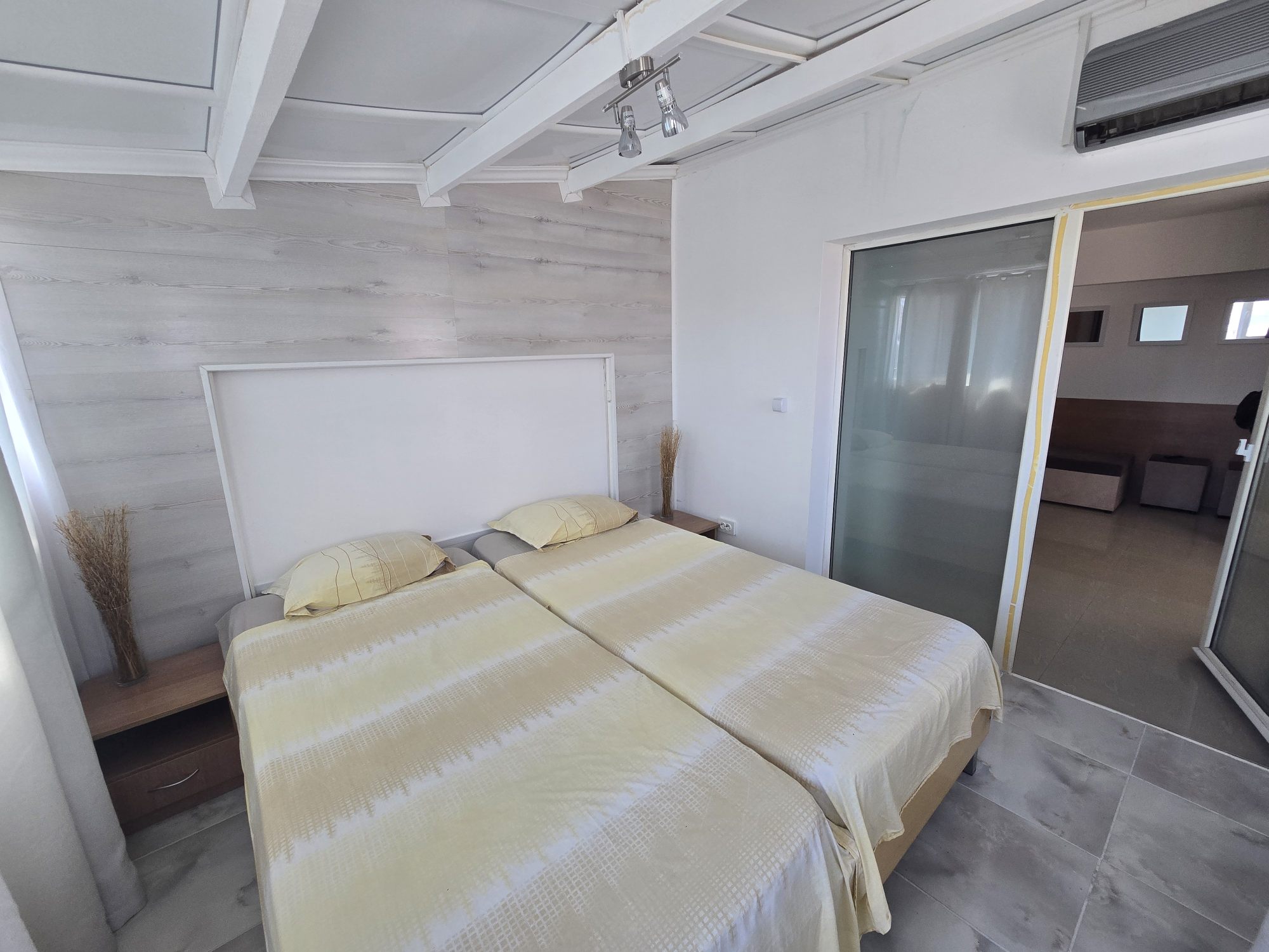 Страхотен едностаен апартамент в Слънчев Бряг. Апартаментът е разположен на пети последен етаж в сграда с асансьор, източно изложение. Има такса поддръжка в размер на 660Евро годишно. Разстоянието до плажа е около 500м. В близост до целогодишен супермаркет и автобусна спирка