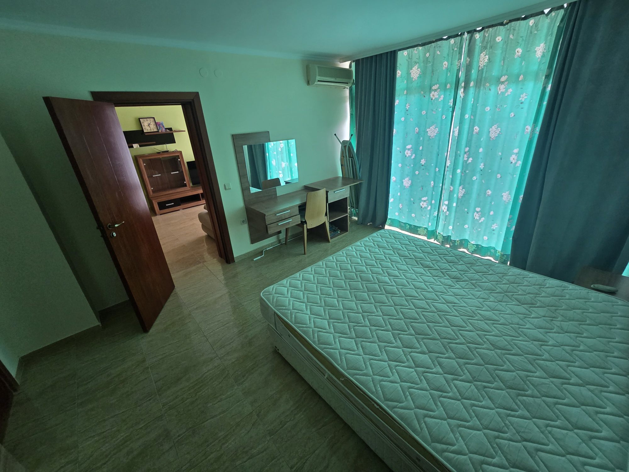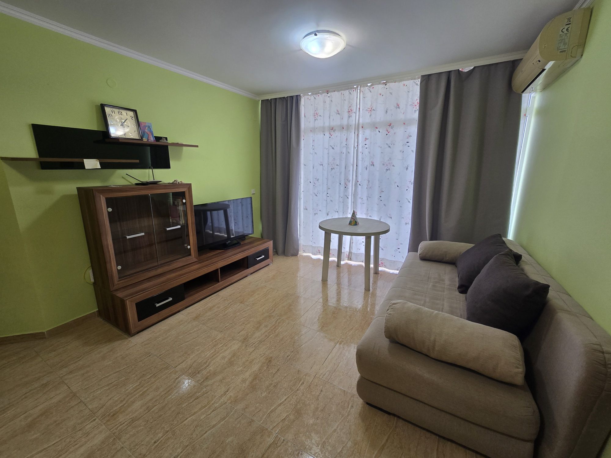 Страхотен тристаен апартамент в централната част на Слънчев Бряг. Апартаментът е разположен на пети етаж в сграда с асансьор, югоизточно изложение. С разпределение от коридор, всекидневна с кухня, две бани две спални и голяма тераса с изход от трите стаи. Разстоянието до плажа е около 600м. С Акт16 и партиди за ток и вода. Управление от етажна собственност с гласувана такса 500Евро годишно. На територията има басейн и вътрешен паркинг. В близост до целогодишен супермаркет и автобусна спирка.